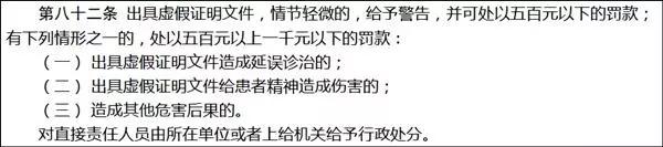 根据《医疗机构管理条例实施细则》第八十二条,医疗机构不得出具虚假证明文件。据现行的《病历书写基本规范》第四十二条规定,医疗机构工作人员弄虚作假、玩忽职守、滥用职权、徇私舞弊,尚不构成犯罪的,依法给予行政处分;构成犯罪的,依法追究刑事责任。