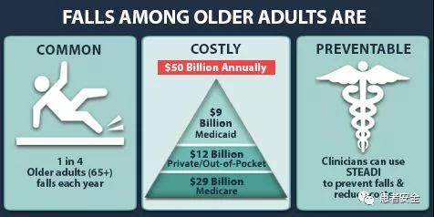 每年有超过80万名患者因摔伤住院,其中最常见的住院原因是头颅损伤或髋部骨折。