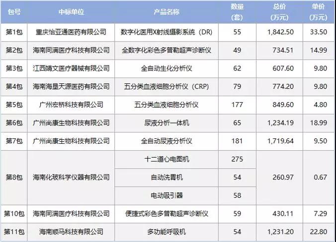 数据来源:海南省政府采购中心《关于海南省基层医疗卫生机构标准化建设医疗设备采购项目公告》、《中标公告》