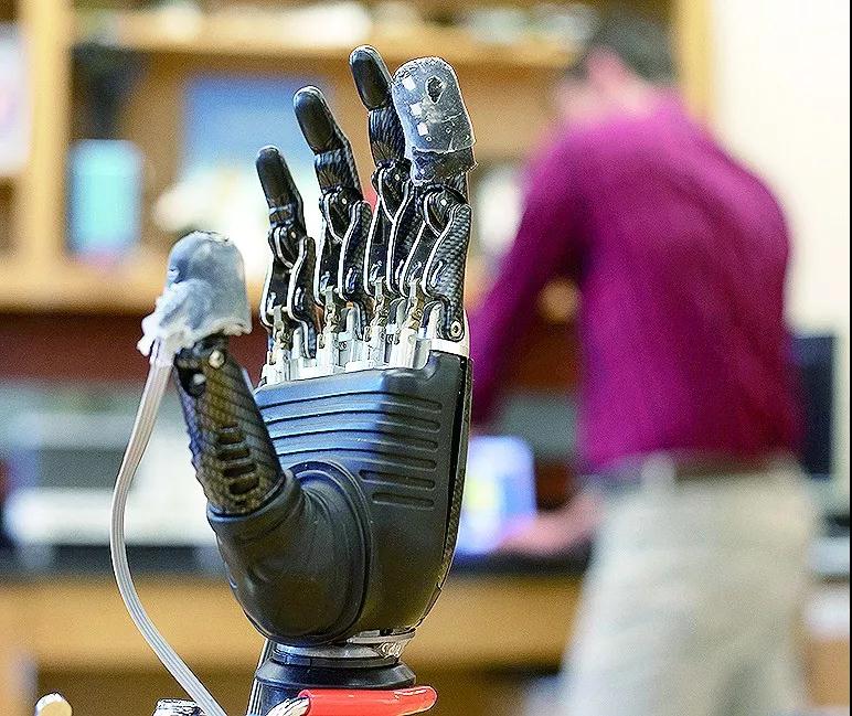 美国约翰霍普金斯大学的研究人员开发了一种电子皮肤--E-dermis,可通过计算机将微小的触觉传感器连接到患者的外周神经上。这个由柔软的织物和橡胶制成的触摸传感器基本上可以重现神经末梢的活动。当把E-dermis用在义肢上时,指尖能给患者带回真正的触感。