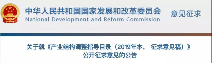 4月8日,国家发改委官方网站发布了关于就《产业结构调整指导目录(2019年本, 征求意见稿)》公开征求意见的公告。(以下称《目录》)。新版内容是在2011版的基础上进行了修订,现向社会公开征求意见。
