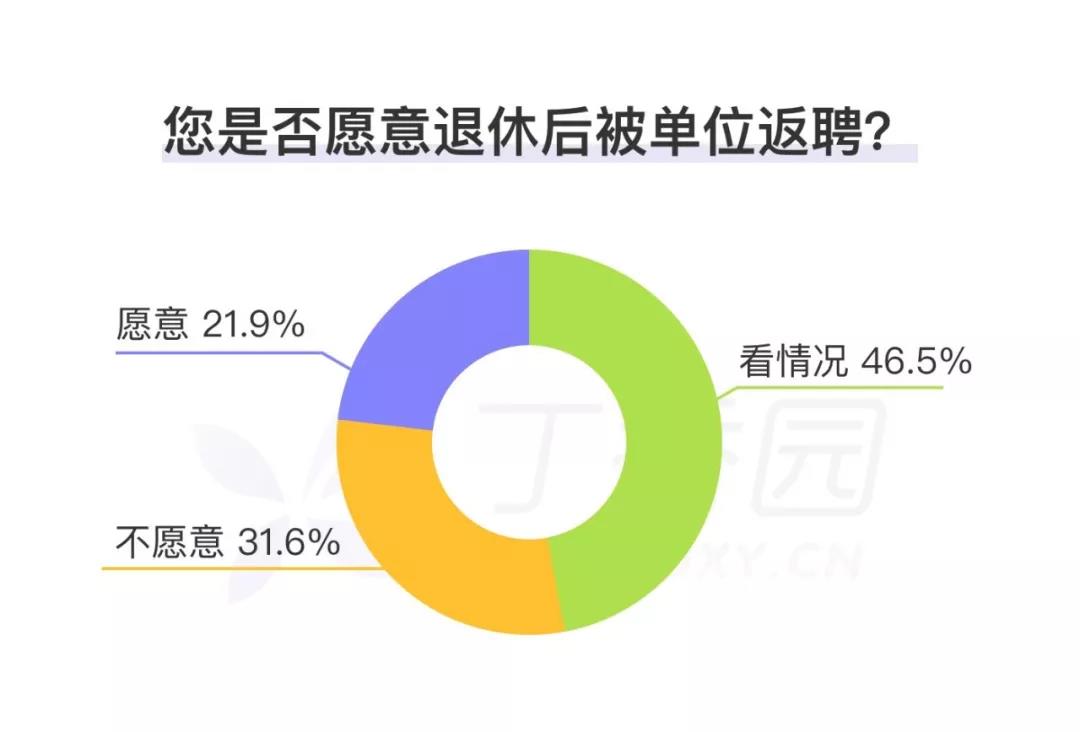 但被问到「是否愿意退休后被单位返聘」时,参与者中有 21.9% 表示愿意,46.5% 视情况而定。