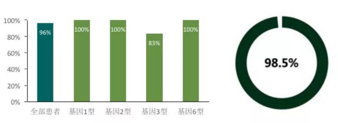(左:试验数据;右:按中国HCV基因型分布的真实比例折算整体SVR12)