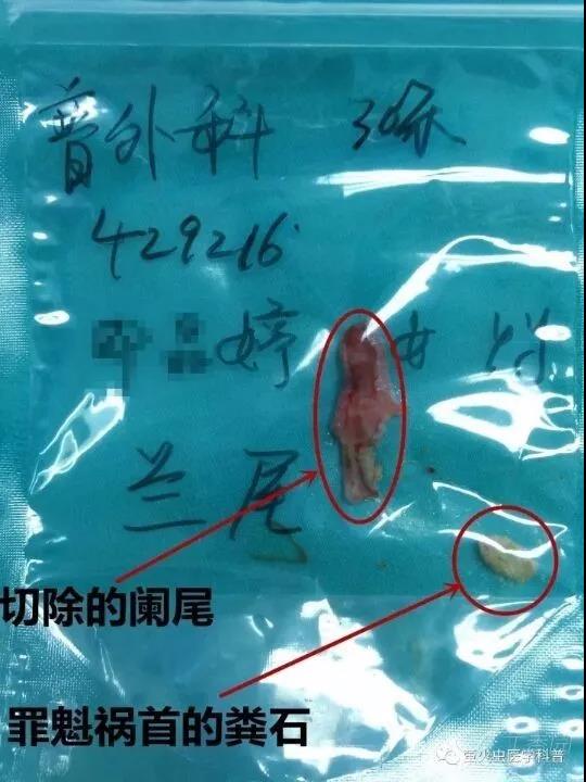 术中见可以看到:无大网膜包裹的阑尾,肿胀、化脓,中段穿孔。罪魁祸首是阑尾炎!