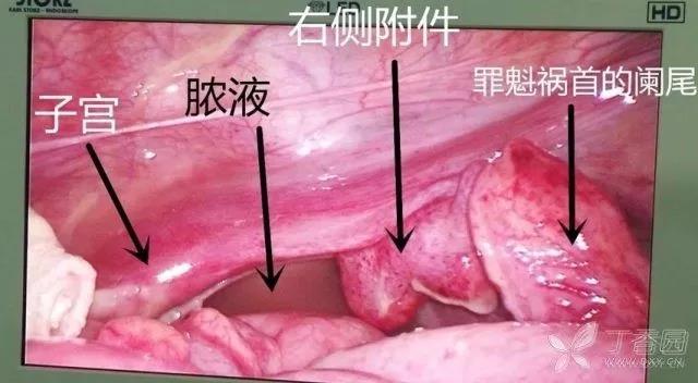 城门失火殃及池鱼,阑尾与右侧附件紧挨在一起,都是肿胀、敷脓苔!