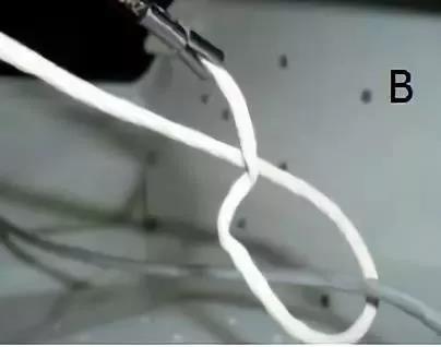 同样方法反向绕形成「O」形的环(图 E);