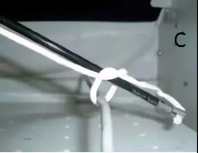 顺势将分离钳夹住的丝线端从「O」形环中通过(图 C);
