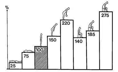 站着的时候,头、躯干、上肢的重量通过腰椎向下传导,最终传到脚弓。坐着的时候,头、躯干和上肢的重量传导到腰部再到臀部。