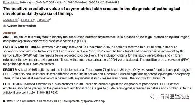 他们分析了20年里所有因为双腿(臀或腹股沟)皮肤褶皱不对称来就诊的孩子,看看这些皮纹不对称的孩子里,到底有多少个是真的有DDH。