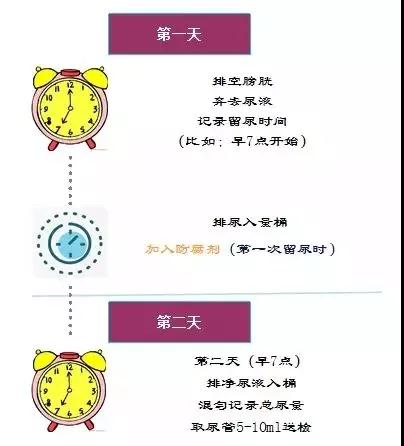 注意啦!其它定时尿如3h尿、12h尿留取方法同24h尿,只是留取时间不同。