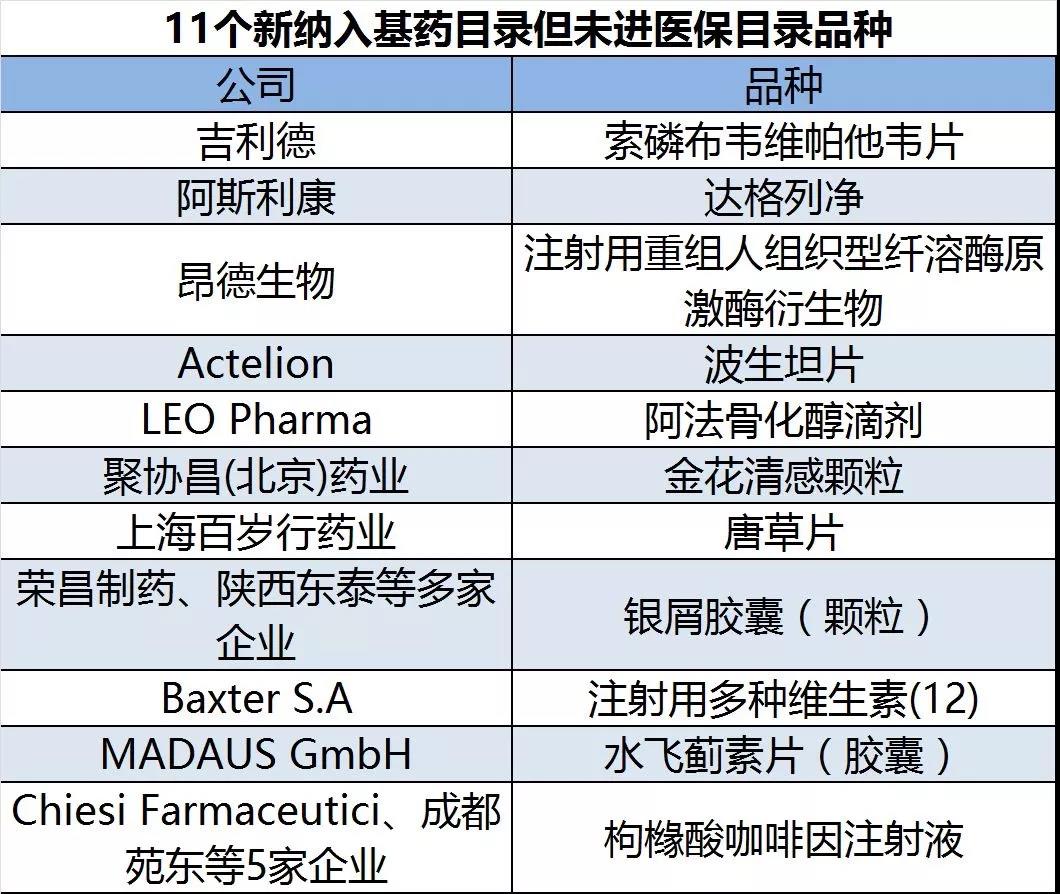 据业内媒体梳理,基药目录内,未进入医保的药品共11个,新版医保目录公布前夕,国家医保局局长发表署名文章明确表示基药非医保品种将纳入医保,对这11个基药纳入医保,无疑传递出了肯定的信号。