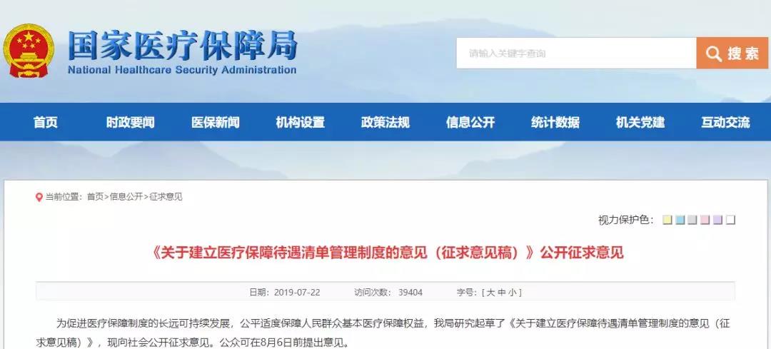 7月22日,国家医保局发布重磅文件《关于建立医疗保障待遇清单管理制度的意见(征求意见稿)》。