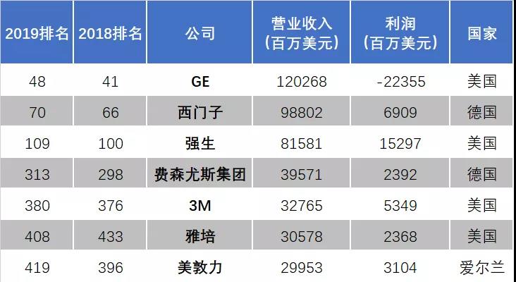 【榜单】《财富》世界500强,7家医疗器械公司上榜:GE、西门子、强生……