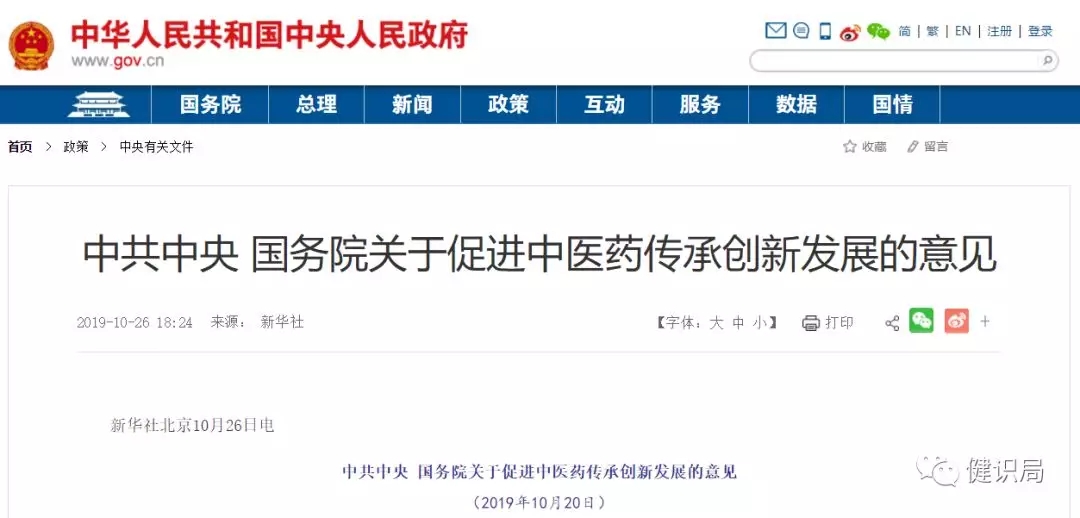 10月26日,国务院正式发布《关于促进中医药传承创新发展的意见》(以下简称“意见”),明确健全中医药服务体系,推动中药质量提升和产业高质量升级,以及人才建设等六大任务。