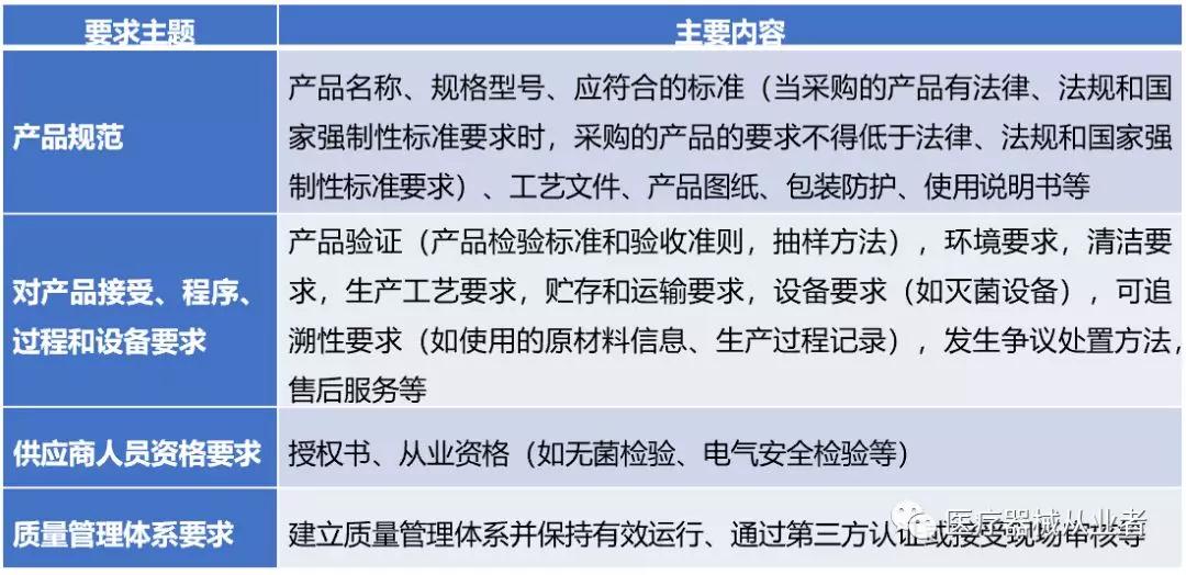 采购信息一般包含产品规范,对产品接受、程序、过程和设备的要求,供应商人员资格要求以及质量管理体系要求,具体要求有如下四个方面: