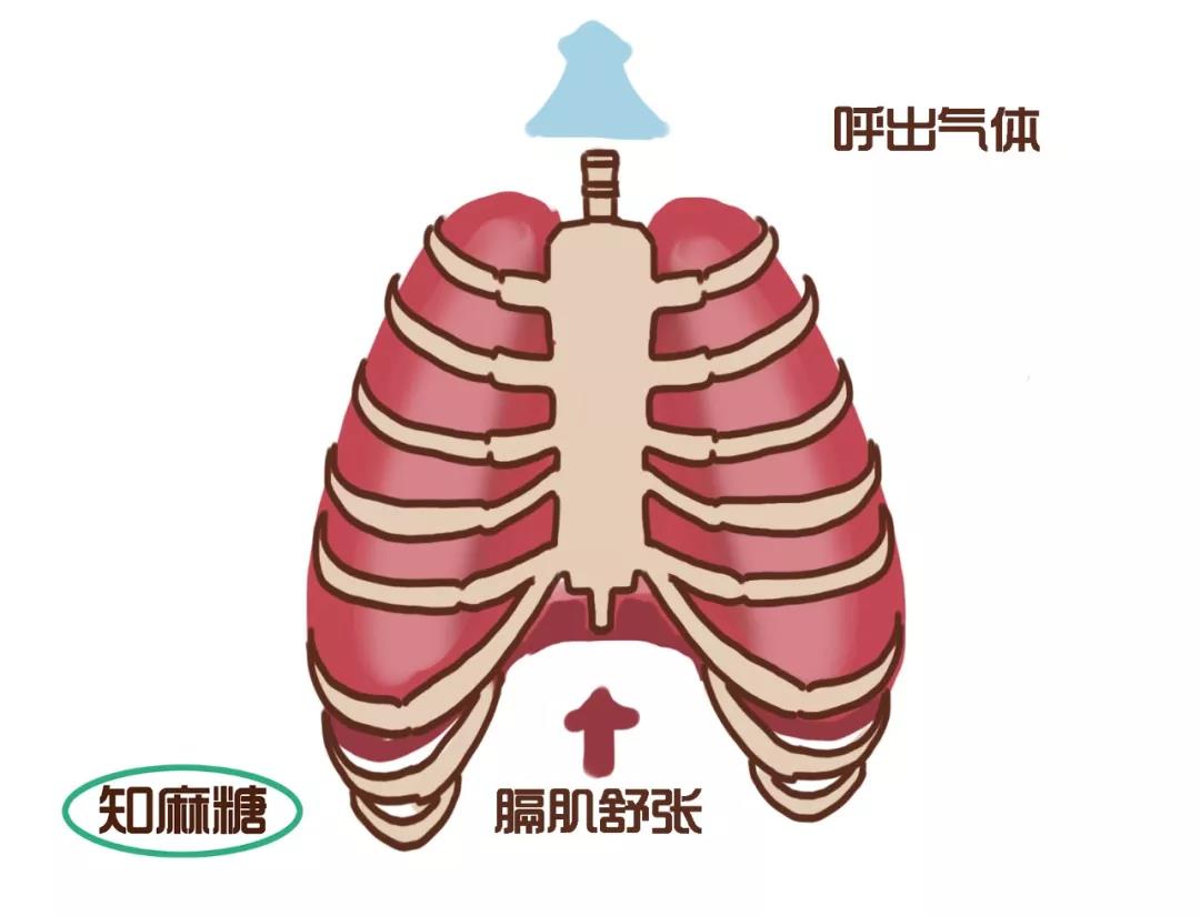 让横膈膜上移,肋间肌放松使得胸腔变小