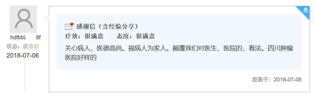 信中称赞我们,“关心病人,医德高尚。视病人为家人。颠覆我们对医生,医院的,看法。四川(省)肿瘤医院好样的。”