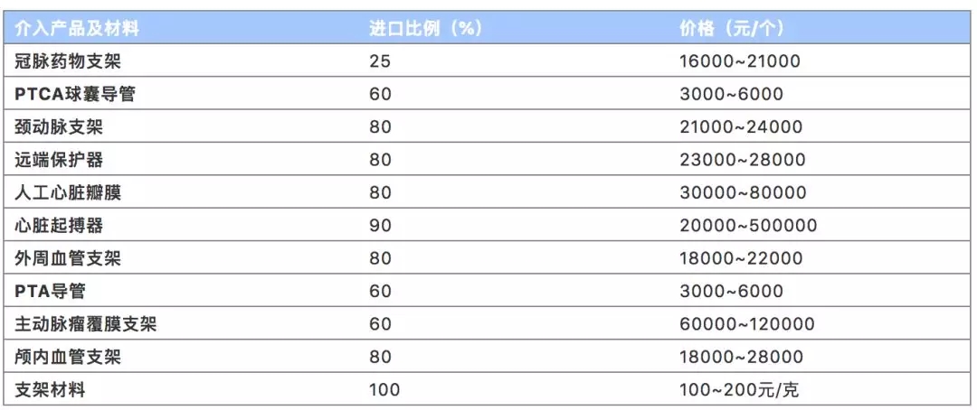国内血管内介入产品和材料进口情况