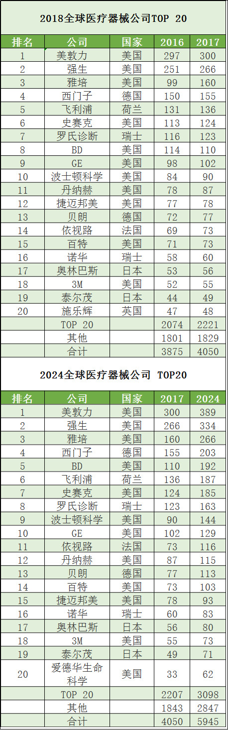全球销售前3强医疗器械公司业绩介绍: