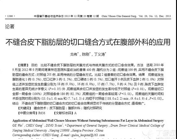引自论文《不缝合皮下脂肪层的切口缝合方式在腹部外科的应用》,作者及来源如截图所示
