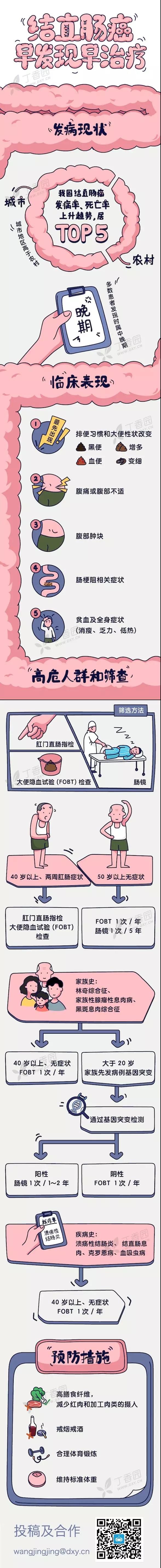 结直肠癌早期无明显症状,大多发现时已属中晚期;而早期发现、及时处理,5 年生存率达 90%。