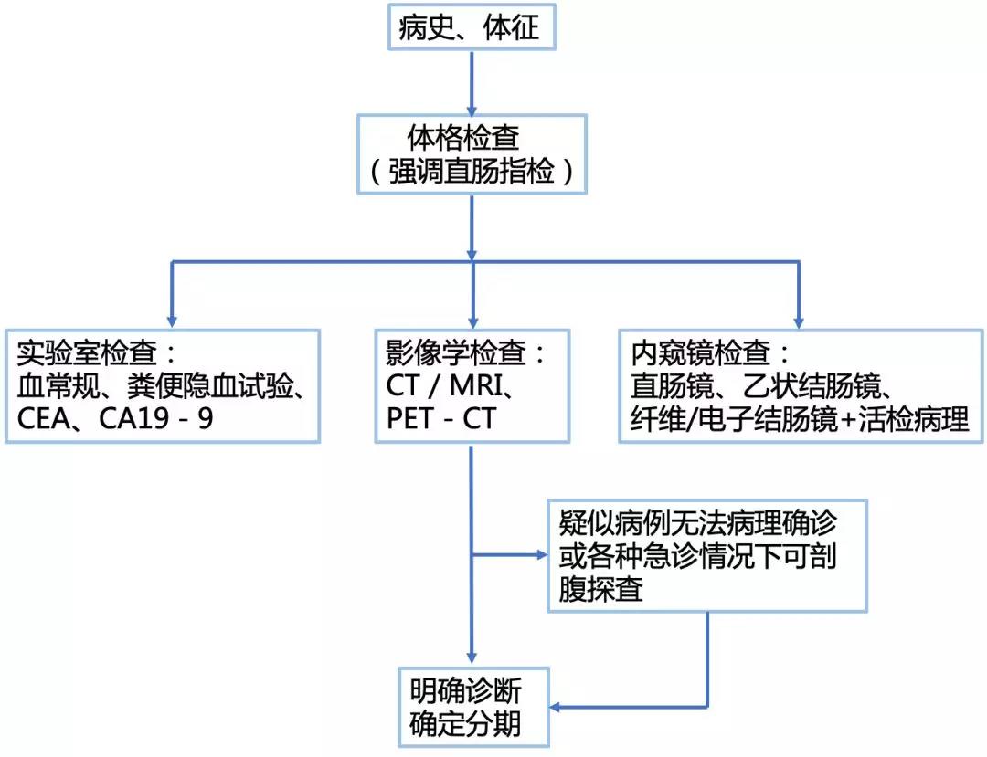 1. 凡疑似结直肠癌者必须常规作肛门直肠指检