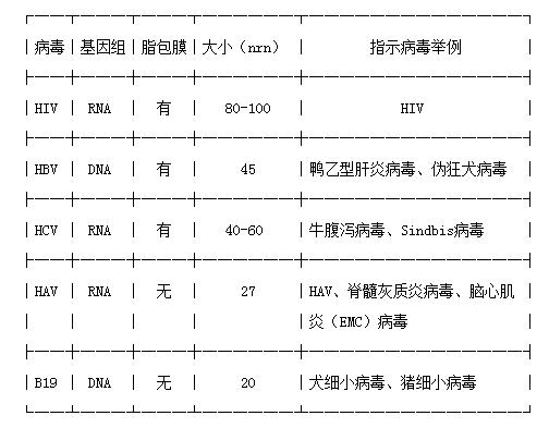 首先,应该选择经血液传播的相关病毒(如:HIV),不能用相关病毒的,要选择与其理化性质尽可能相似的指示病毒;第二,所选择的病毒理化性质应有代表性(病毒大小、核酸类型以及有无包膜),其中至少应包括一种对物理和/或化学处理有明显抗性的病毒。在进行去除/灭活病毒验证时,应根据制品的特性及所采用的病毒去除/灭活工艺,参照下表列举的病毒选择适宜的指示病毒。所选择的指示病毒至少应包括HIV-1、HBV和HCV